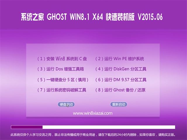 系统之家GHOST WIN8 X64 专业装机版v2015.06采用最新内核技术,通过支持3D图形显示和触摸设备,全面优化虚拟内存和启动程序。系统删除不必要的功能,纯净清爽,没有多余的捆绑软件,是一款标准的纯净版