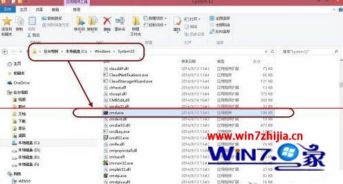 4、找到系统盘文件夹windows/system32中的cmd.exe文件,或者在开始菜单中,找到所有程序—附件— 命令提示符图片。