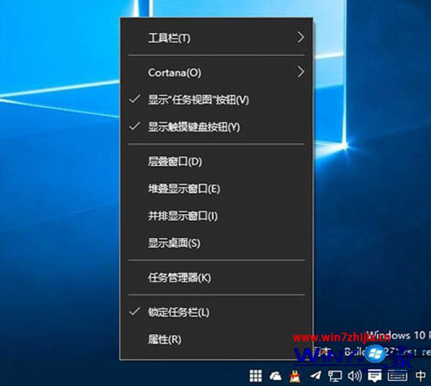 2、但奇怪的是,在小编使用的这台电脑中无论该选项是不开启,都无出现这个问题。经测试发现,如果在任务栏右键菜单中选中“显示触摸键盘按钮”后,这个问题便不会出现,如下图所示: