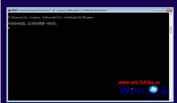 4、记下盘符以后,关闭记事本,在命令提示符中写入下面的命令回车便可启动“一键修复”,注意依据实际情况修改命令中的盘符: