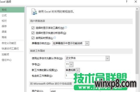 4、点击“选项”命令选项后,这个时候会打开Excel选项对话窗口。如图所示;
