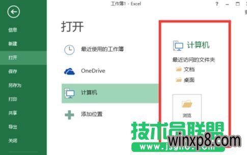 8、返回到Excel工作薄窗口,我们再点击“文件”--“打开”--“计算机”命令选项,在窗口中我们可以看到在“最近访问的文件夹”中已经没有使用过的记录在这里显示。如图所示;