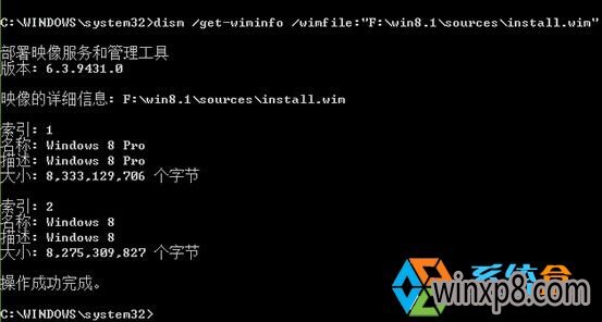 镜像中包含多个版本,需要确认自己需要的版本,我的镜像路径是"F:\windows10\sources\install.wim",则执行下面命令:dism /get-wiminfo /wimfile:"F:\windows10\sources\install.wim"版本1是win10 Pro版本2是windows10标准版,我是win10 Pro自然选1。