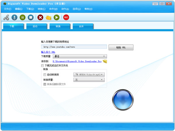 Bigasoft Video Downloader是一款可以帮助你下载网络视频的工具软件。软件官方支持简体和繁体中文语言界面,你开启程序后只需要复制视频网址程序会自动检测,下载后的视频还可以自动转换成其他视频文件格式,支持市面上大多数的流行视频文件格式,并支持剪辑视频的功能。